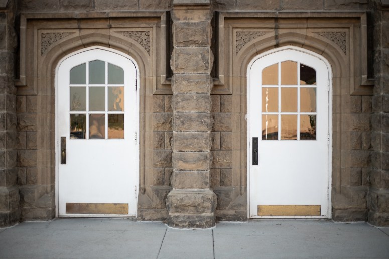 Parking lots are on both sides of the church for easy access to entering the big white doors in the front of the church.